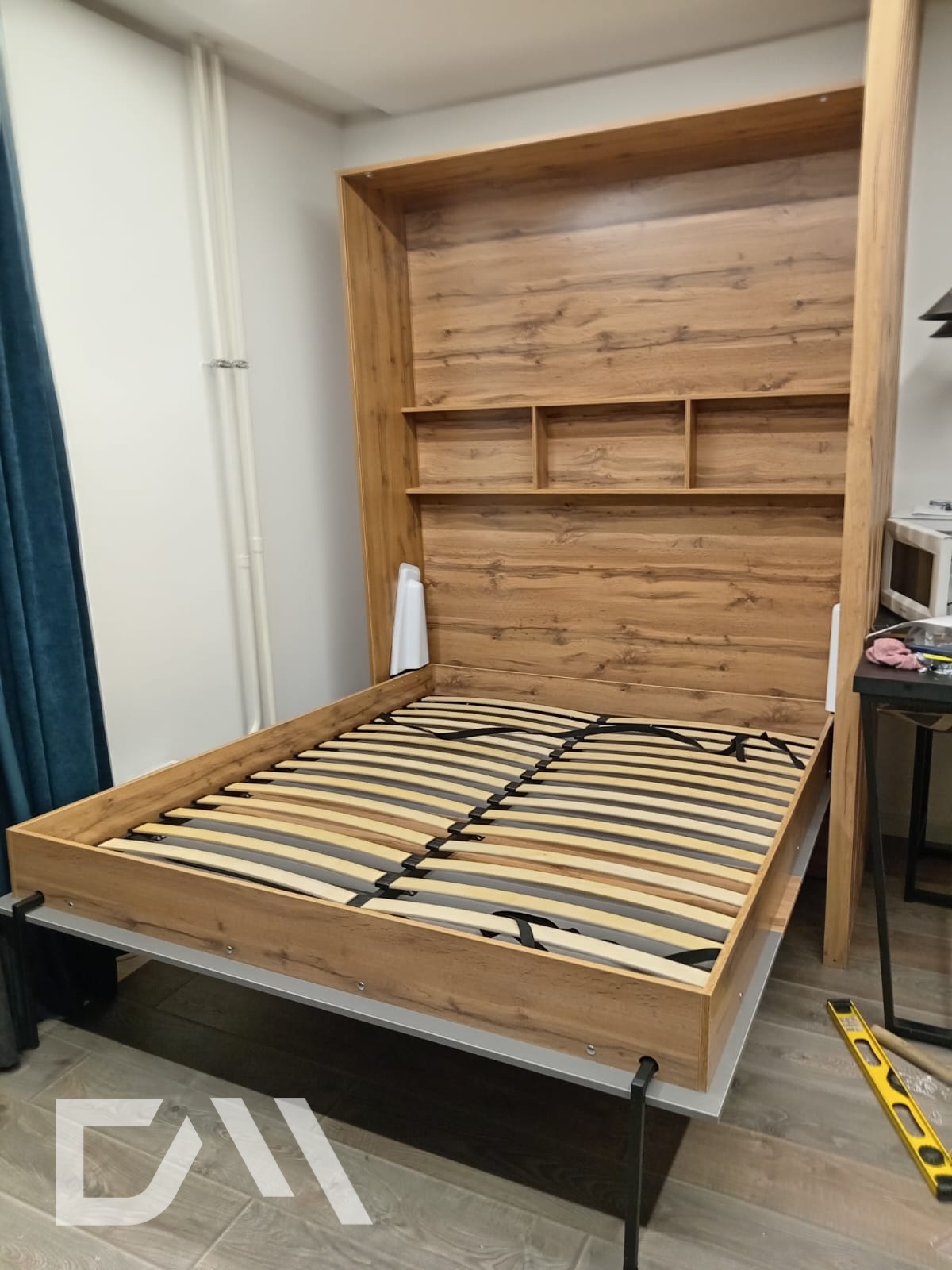 - Встроенные полки. Некоторые шкаф-кровати откидного типа могут иметь встроенные полки или другие элементы хранения внутри корпуса. Это позволяет хранить различные предметы, такие как книги, игрушки или постельное белье, максимально эффективно используя доступное пространство.