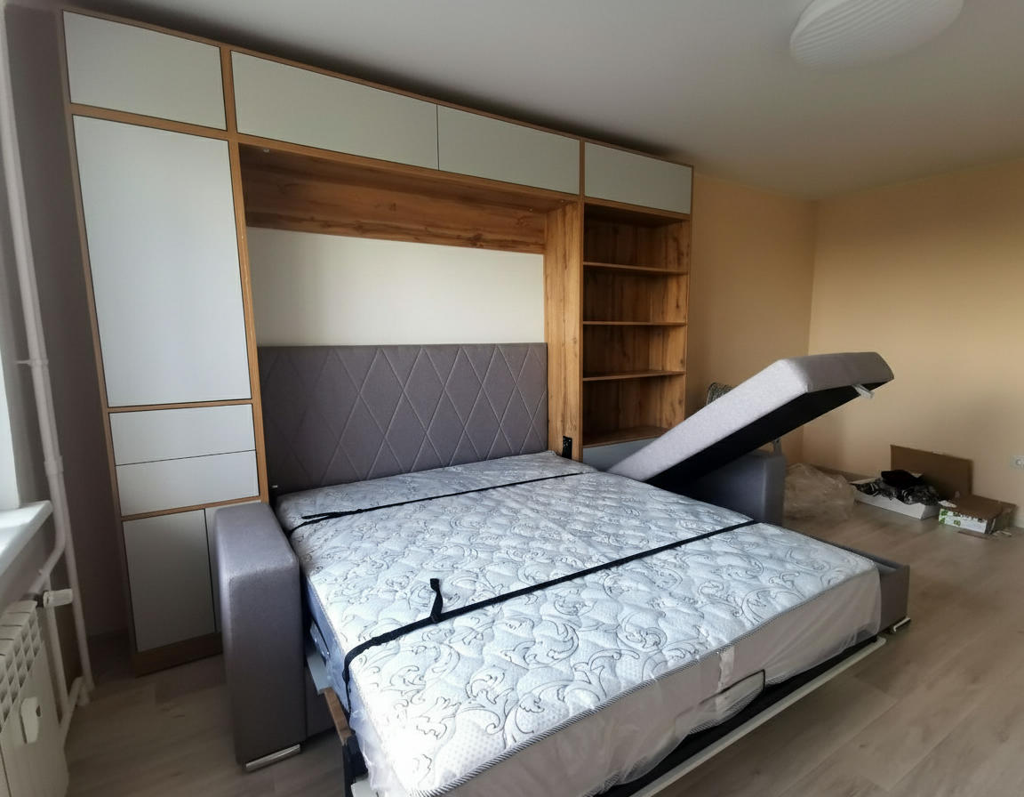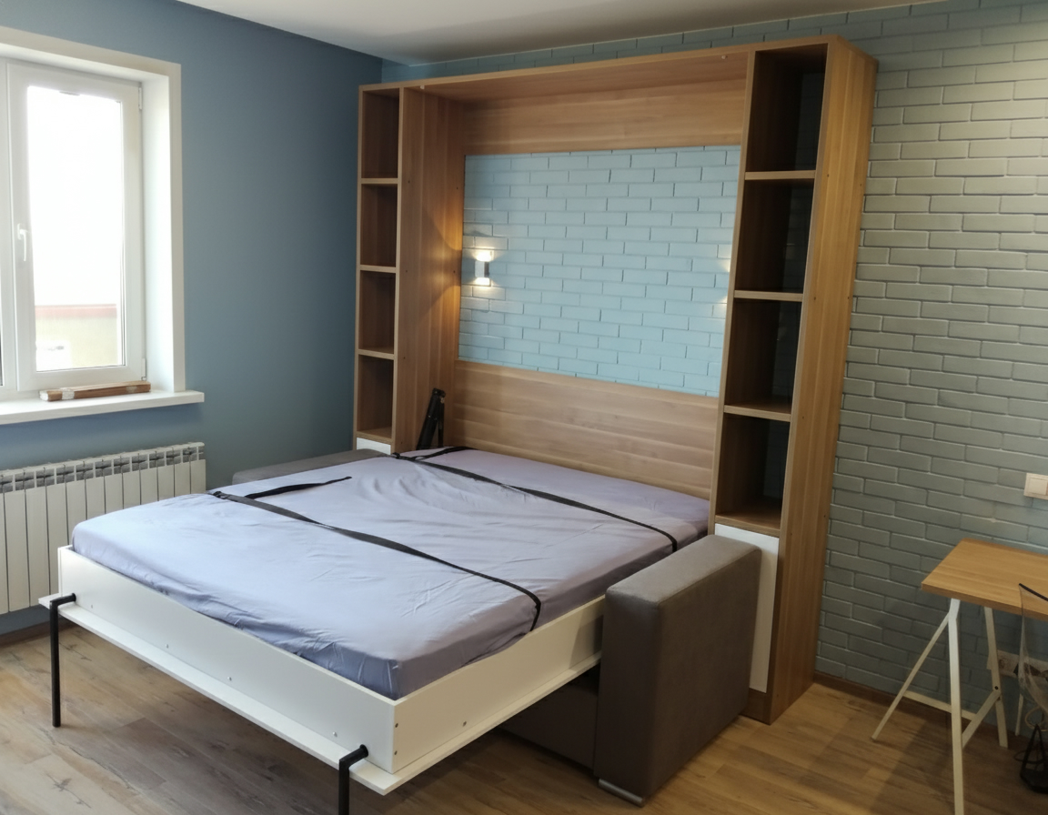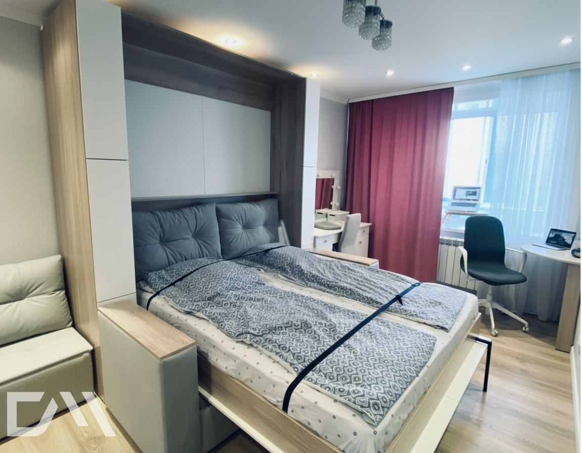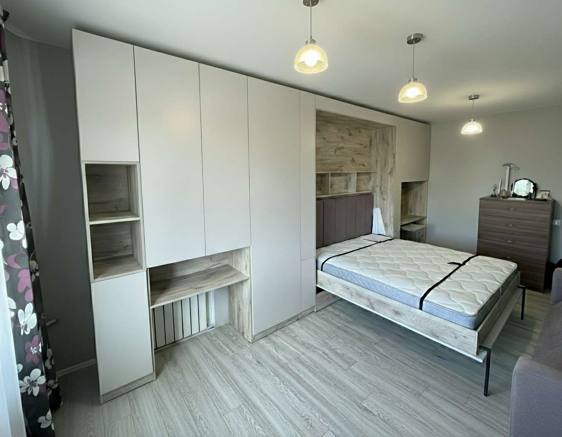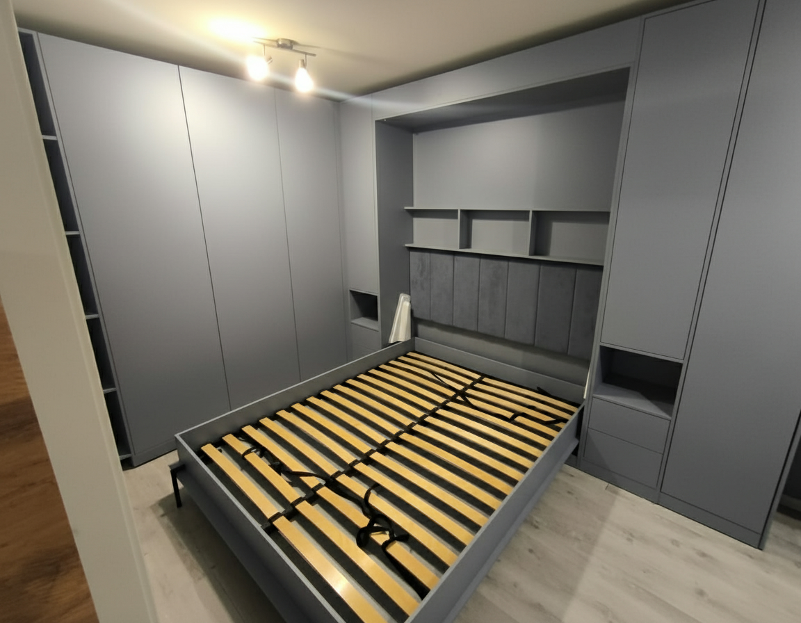 - Экономия пространства. Откидные шкаф-кровати идеально подходят для помещений с ограниченным пространством. Когда кровать не используется, она легко поднимается и скрывается внутри шкафа, освобождая полезное пространство для других деятельностей.