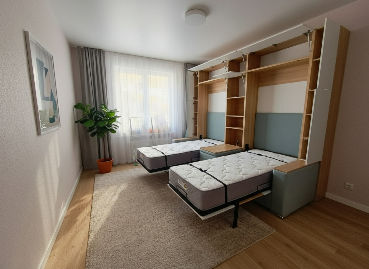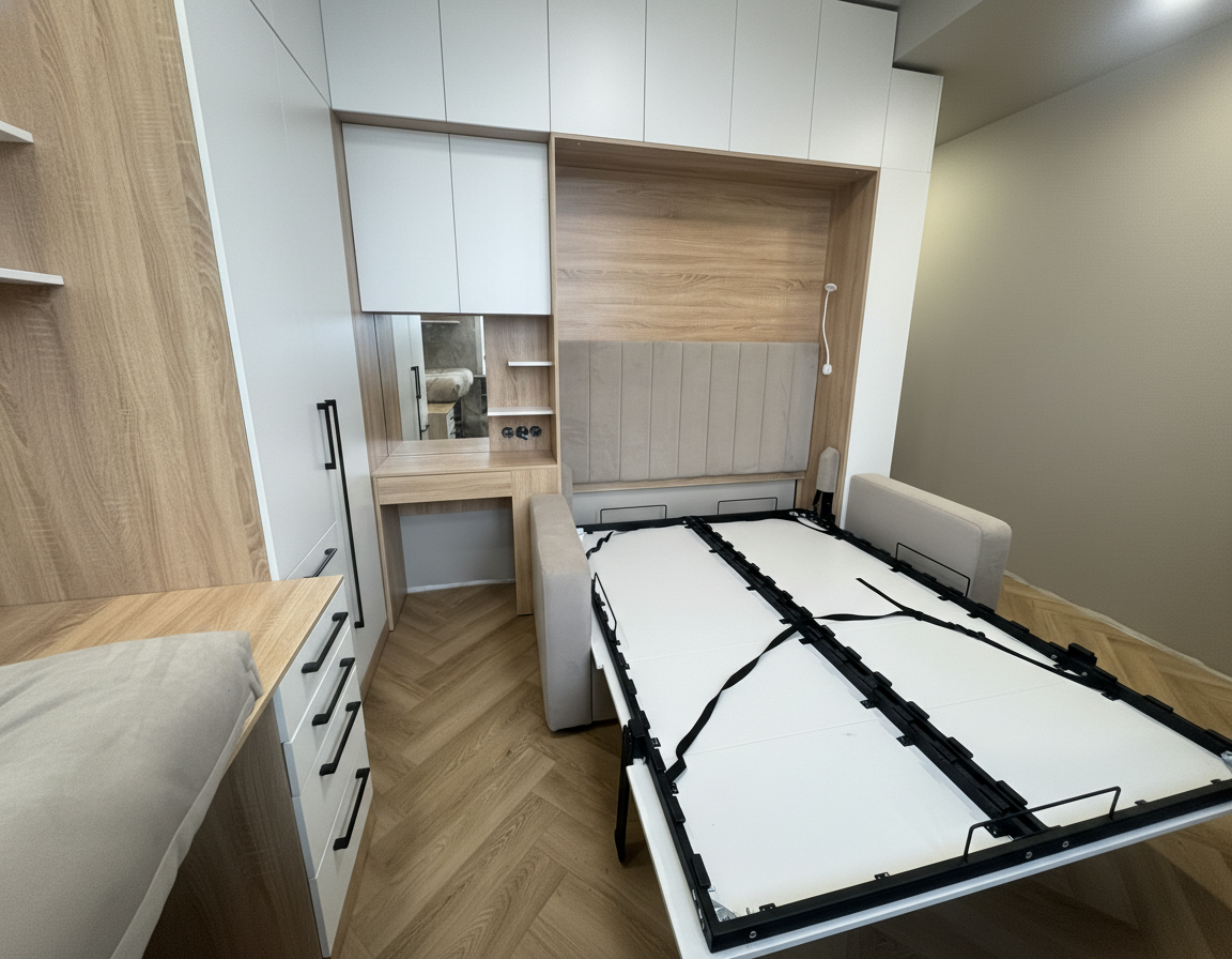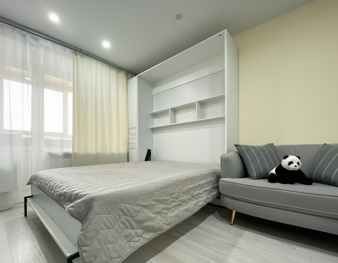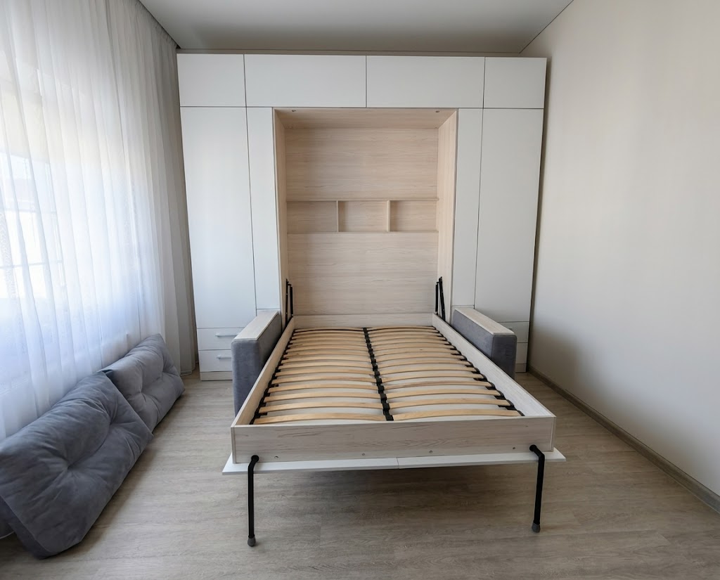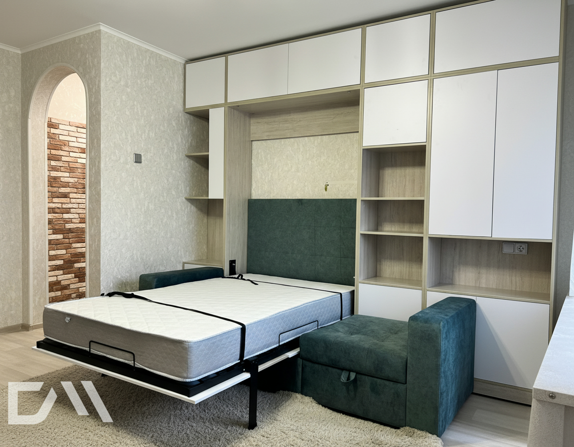 - Экономия пространства. Откидные шкаф-кровати идеально подходят для помещений с ограниченным пространством. Когда кровать не используется, она легко поднимается и скрывается внутри шкафа, освобождая полезное пространство для других деятельностей.