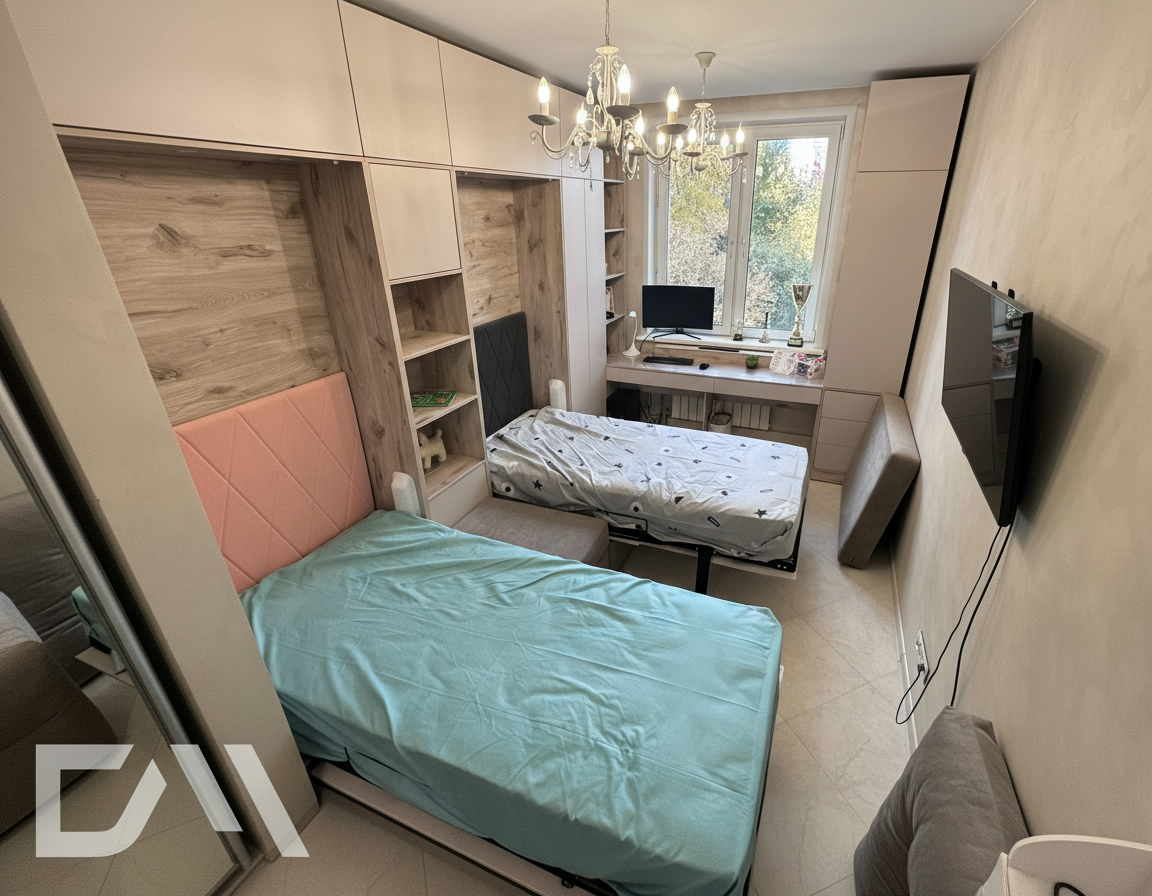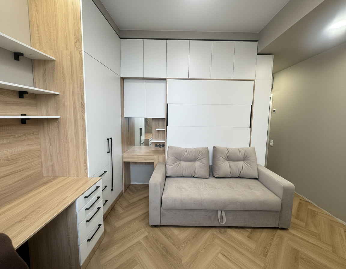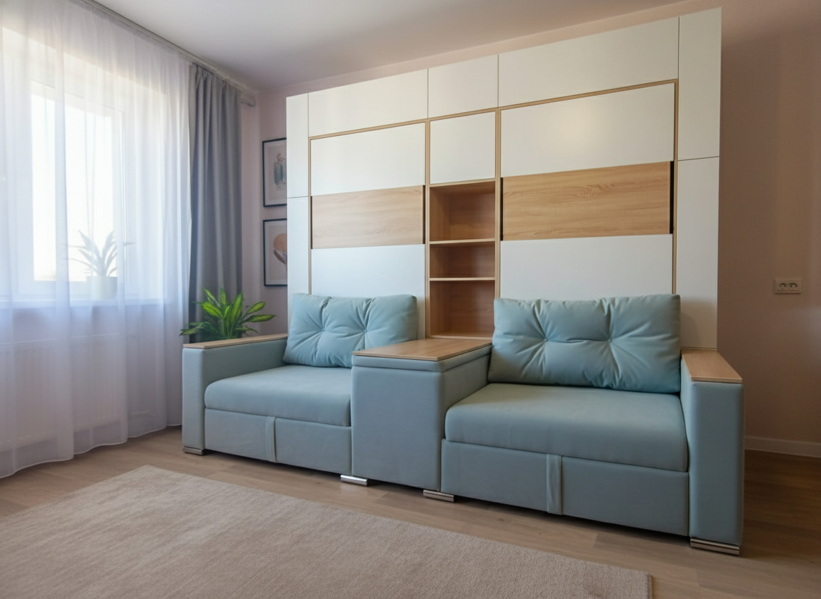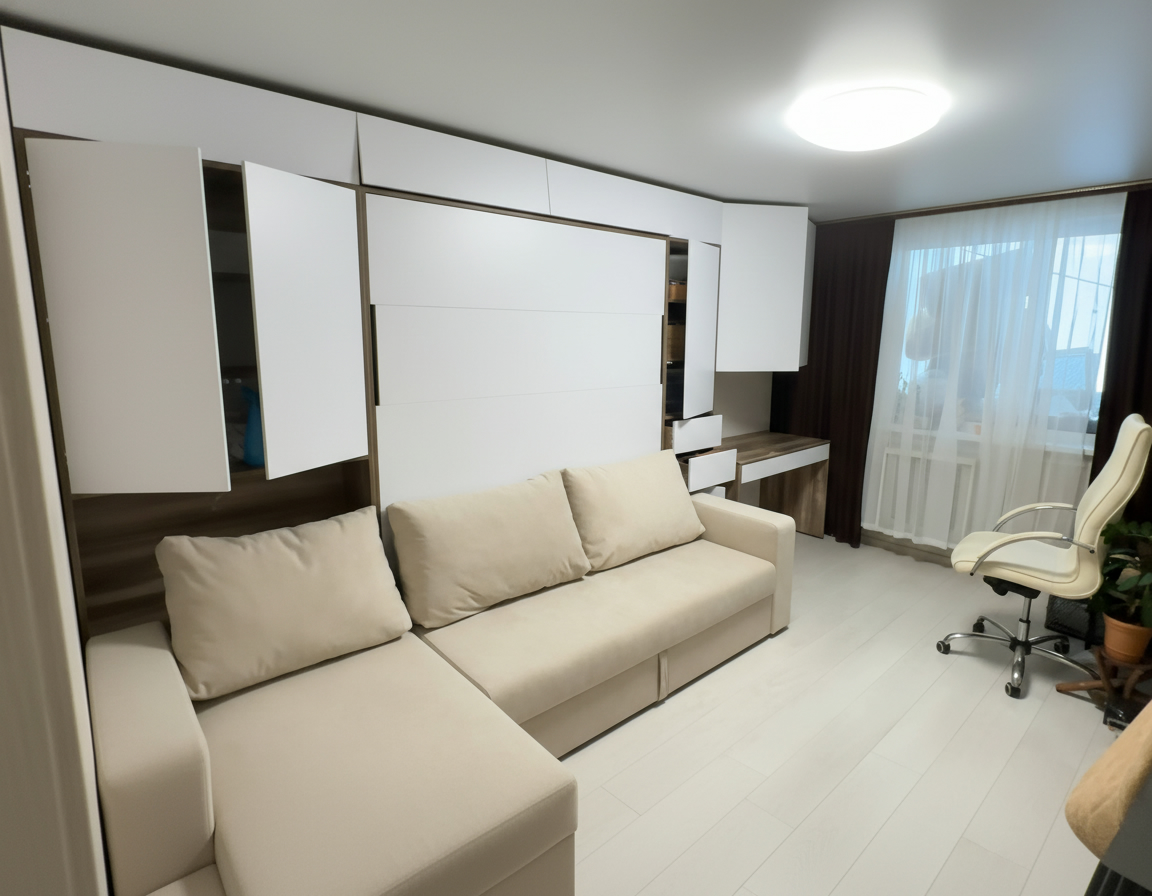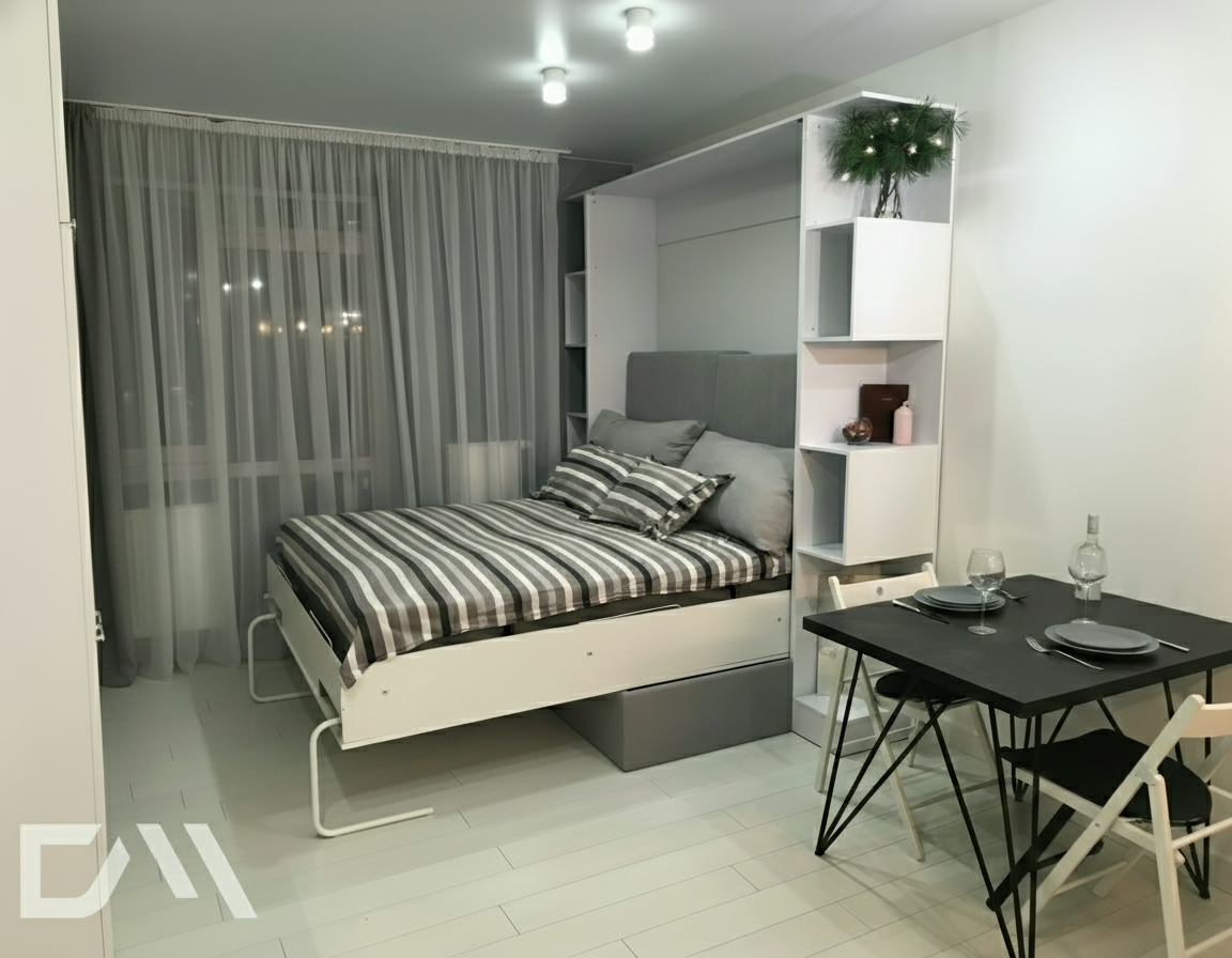 - Экономия пространства. Откидные шкаф-кровати идеально подходят для помещений с ограниченным пространством. Когда кровать не используется, она легко поднимается и скрывается внутри шкафа, освобождая полезное пространство для других деятельностей.