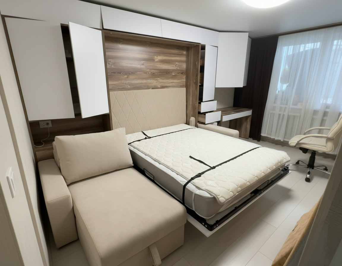 - Специальные матрасы. Для откидных шкаф-кроватей часто используются специальные матрасы, которые имеют усиленный периметр, чтобы лучше соответствовать форме и размеру кровати в сложенном состоянии.