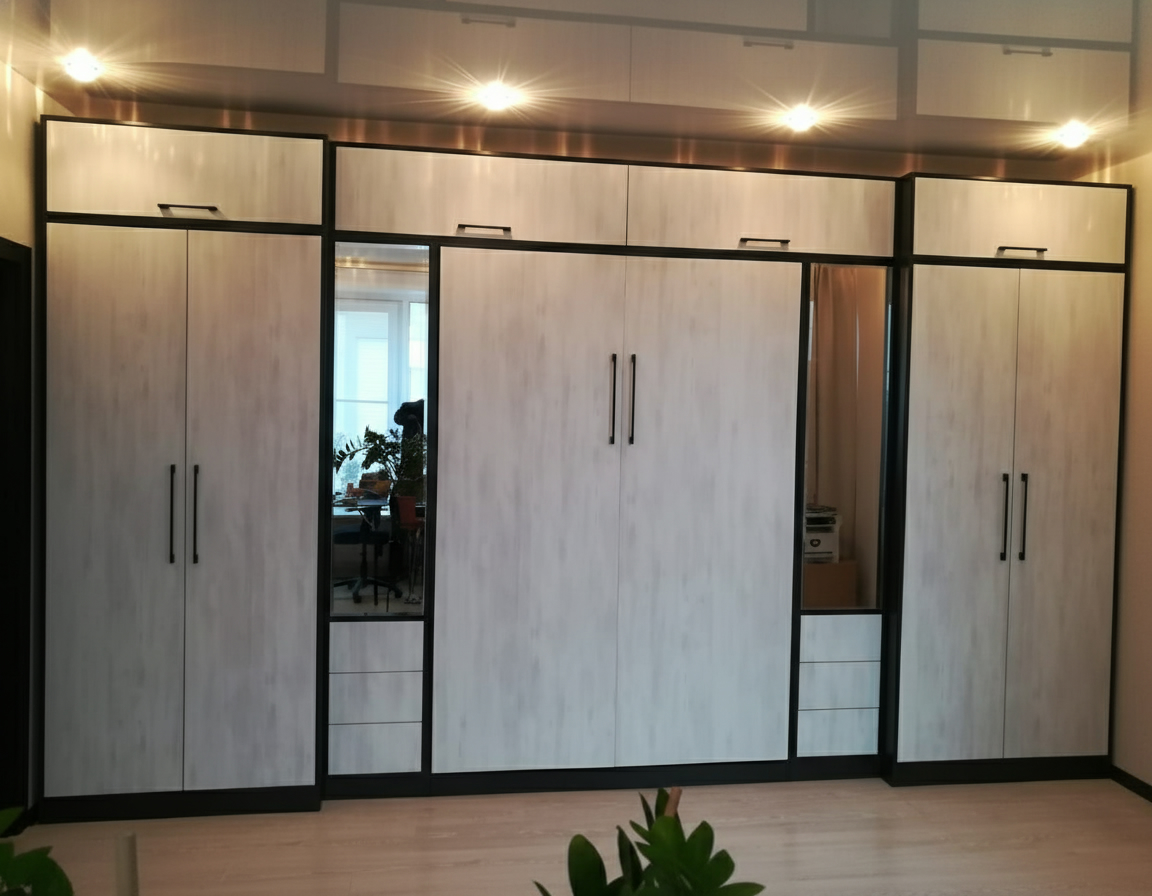 Шкаф-кровать откидная сегодня является популярным решением для сохранения пространства в различных помещениях, включая детские комнаты, спальни и гостиные. Фотогалерея работ на нашем сайте предоставит вам возможность оценить различные дизайны, стили и качество исполнения шкафов-кроватей откидного типа. Вы сможете увидеть примеры их использования в разных помещениях и получить представление о том, как они могут дополнить интерьер и обеспечить максимальную функциональность при сохранении пространства. Это поможет вам принять информированное решение при выборе шкафа-кровати откидного типа для своего помещения. Вот ключевые особенности и преимущества шкафов-кроватей откидного типа: